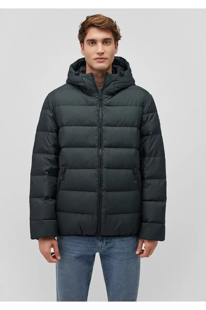 Пуховик с капюшоном зеленого цвета - идеальный выбор, чтобы оставаться в тепле и стильно выглядеть в холодные зимние дни, сочетающий в себе высокую производительность и элегантный дизайн. Его легкая и водонепроницаемая конструкция защищает вас от непогоды, а стильный дизайн дополняет ваш образ.
