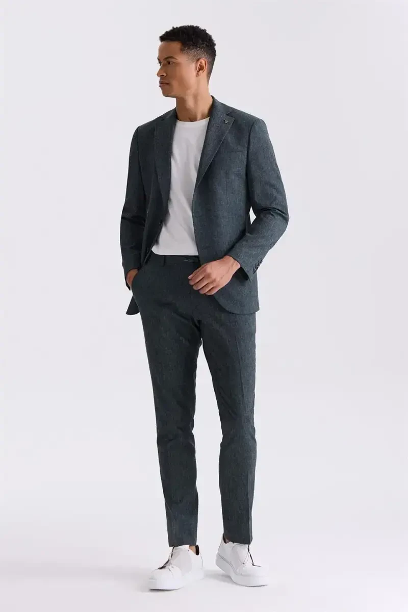 Green Slim Fit Mono Collar Linen Suit to reflect your style.