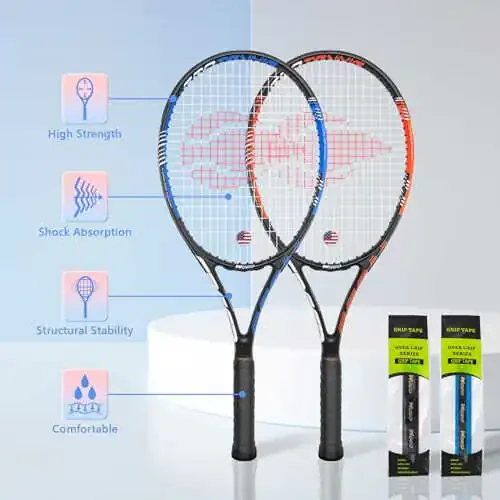 Product Description: Length: 27in, Grip Size: 4.25 in, Weight: 280±5g, Head Size: 105 in. The design of the racket allows you to grasp the rhytModazone of offense and defense at any time Integrated Structure Vibration Dampe: The racket is equipped with Vibration Dampe and adopts integrated structure to make the racket more stable and shock-proof when receiving the tennis. When you hit the tennis, you can better control the force and direction. Comfortable OverGrip: In order to make your handle comfortable to hold, the tennis racket uses Double Overgrip (base overgrip + high-elastic overgrip). When you start using it, you don’t need to tie overgrip. After you using for a period of time, you can replace the outer high-elastic grip. Suitable for You: In order to allow beginners and professional players to better use the racket when playing, we have exclusively designed the head, frame and string of the product to make the racket not only suitable for beginners, but also for professional players. After-sales Service: When you are not satisfied with the product, we will provide you with free return and exchange service. If you have any questions, you can contact us at any time, we will contact you within 24 hours and we will try our best to meet your needs.
