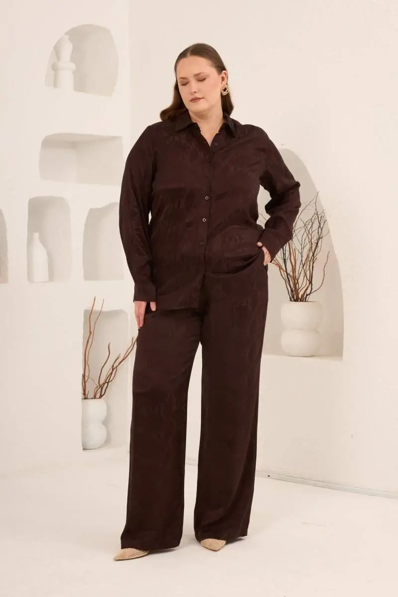 Yılan Desenli Beli Lastikli Kadın Büyük Beden Bol Paça Pantolon Kahve