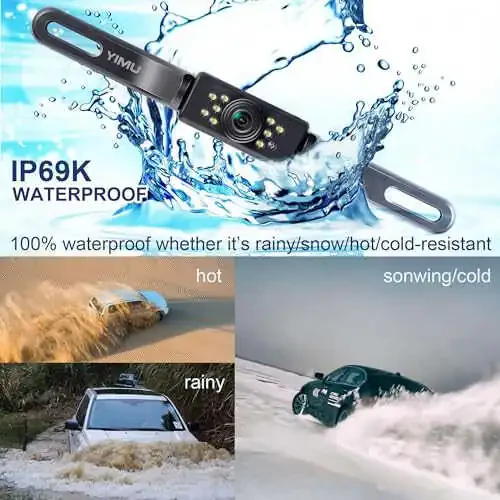 Certified IP69K waterproof, the YIMU camera is resistant to dust, rain, and other weather conditions, ensuring reliable operation in all weather. Suitable for cars, SUVs, trucks, RVs, and pickup trucks, this camera enhances your vehicle's safety, reducing the risk of accidents.