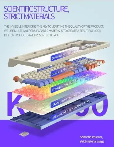 【98-key simple layout】The KM800 is a 98 keys membrane gaming keyboard with all functions implemented through the "FN" key combination. The 98-key layout of the gaming keyboard not only retains the complete numeric keyboards area and multimedia keys area, but also takes into account the overall size of portability and saving desktop space. This cool gaming keyboards is the best choice of most FPS gamers or typists. 【Cool LED Backlight Mode】Colorful neon backlight - breathable - can be turned off. Our KM800 gaming keyboards automatically emits a hybrid backlight when turned on, and supports adjusting the breathing light mode. The keyboard's lighting brightness and breathing rate can also be adjusted. You can switch the built-in backlight color at will, and adjust the backlight brightness and speed through shortcut keys. This keyboard gaming allows you to have more fun while gaming or typing at night! 【Keyboard Structure】 The bottom of the 98-key gaming keys board adopts a thick bottom shell structure. The middle two layers of the keyboard gaming are silver paste conductive film, transparent light guide plate and gasket material. Since the key board panel is not in direct contact with the rest of the keyboard,so keying is fast and precise, keep quiet while maintaining sensitivity. Don't worry about disturbing others to rest while working or playing games. 【Ergonomic Keyboard】The design of this membrane gaming keyboard is based on ergonomics. Scientific stair-up Key caps design brings maximum comfort, keeping your hand in a most natural state to minimize hand fatigue after longtime use. PC gaming keyboards perfect for gamer, office worker, copywriter, typing teacher and editors.Detachable USB keyboard cable make the quite gaming keyboard more portable and support customized. 【Smooth Gaming Experience 】This gaming keyboard contains 19 skill keys commonly used in games. The 19 keys can be clicked at the same time without any conflicts. The keyboard's appearance and strength coexist, which can providing a fast and seamless feedback experience for efficient office work and competitive gaming! Skills will not be stuck in the keys, and you can win quickly in one step! Suitable for Mac/Win double system.