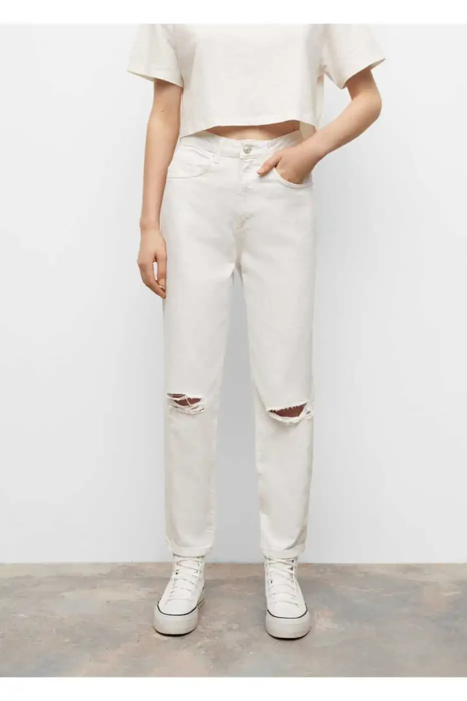 Zamonaviy go'zallik: Yirtilgan detalli tekis kesim jinsi shimlar