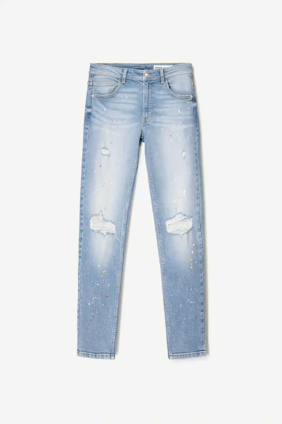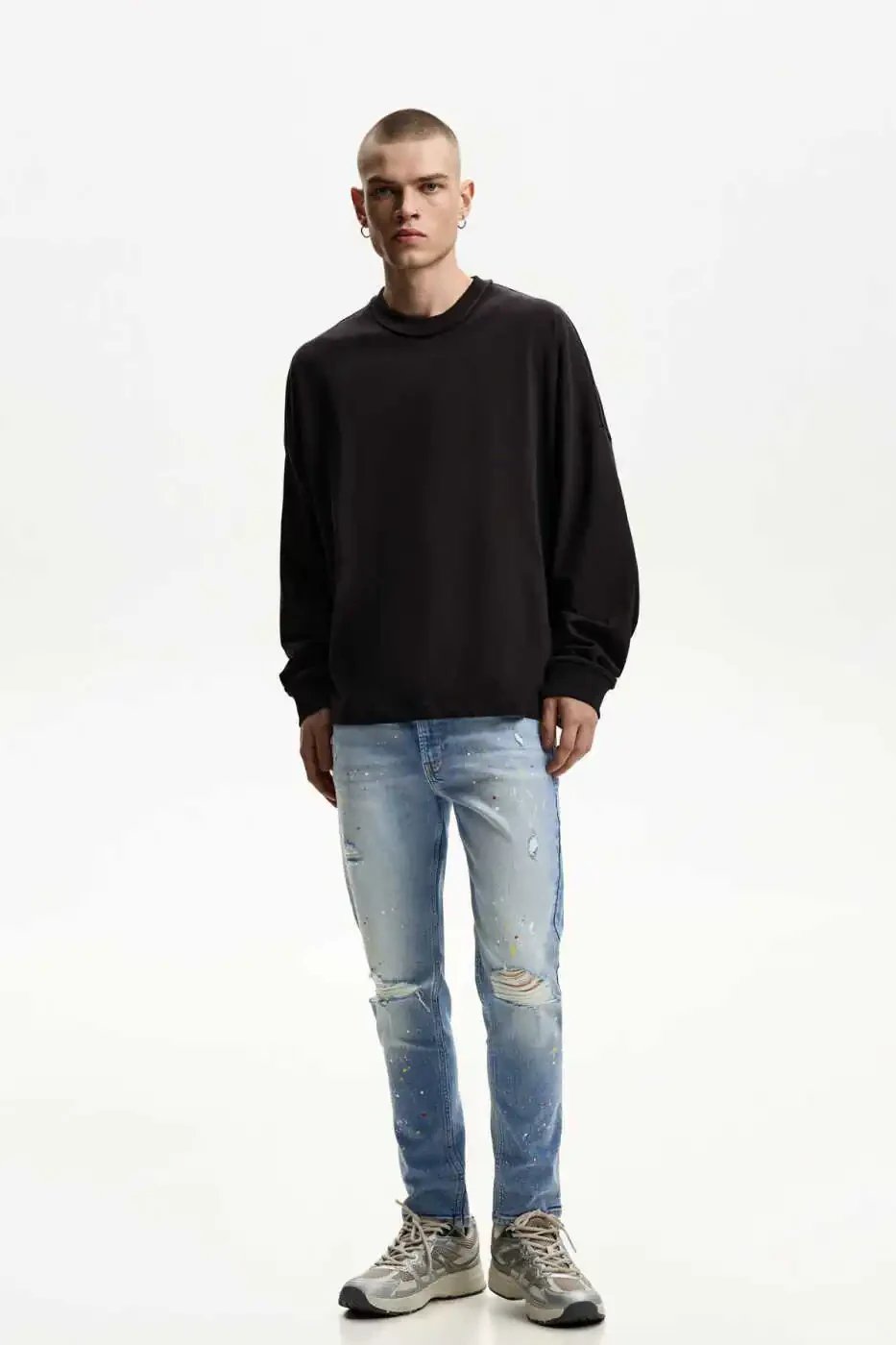 Modelning bo'yi 183 sm, mahsulot suratga olishda 40 o'lcham kiygan. Mahsulotning rangi va yıpratilgan detallari suratga olish yorug'ligi va monitor sozlamalaringizga ko'ra kichik farqlar ko'rsatishi mumkin. Yıpratish detallari har bir mahsulotda qo'l ishi yoki maxsus jarayonlar tufayli kichik farqlarni o'z ichiga olishi mumkin, bu esa mahsulotning noyobligini oshiradi.