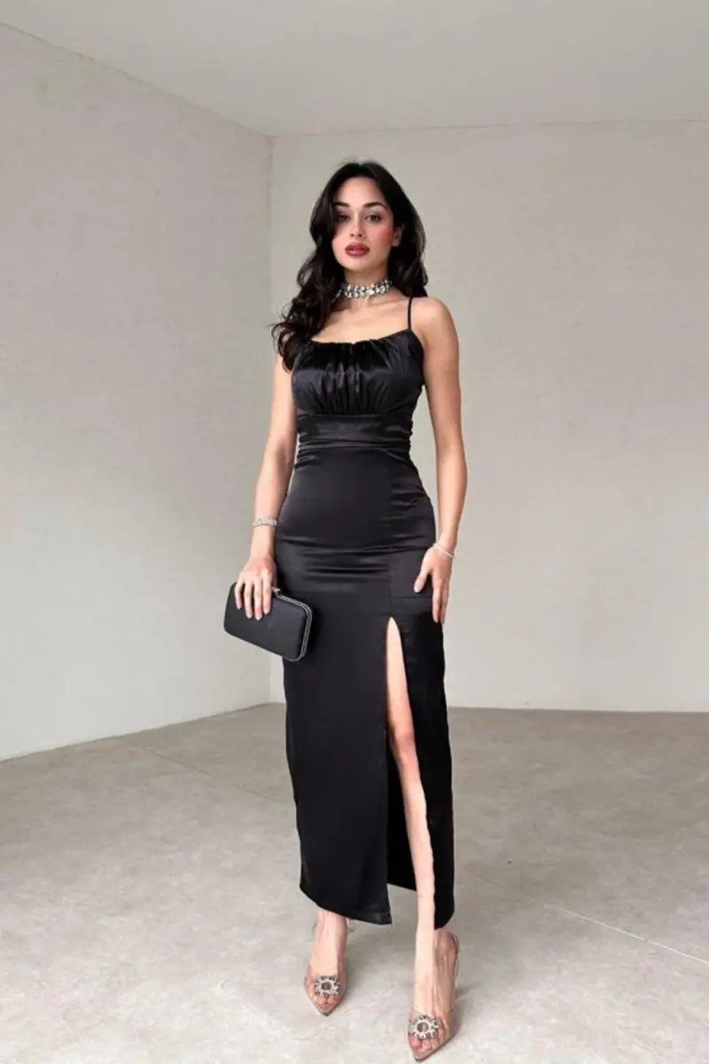 Bu ürün ALFUDO Moda Collection tarafından gönderilecektir.Kampanya fiyatından satılmak üzere 50 adetten fazla stok sunulmuştur.Bir ürün, birden fazla satıcı tarafından satılabilir. Birden fazla satıcı tarafından satışa sunulan ürünlerin satıcıları ürün için belirledikleri fiyata, satıcı puanlarına, teslimat statülerine, ürünlerdeki promosyonlara, kargonun bedava olup olmamasına ve ürünlerin hızlı teslimat ile teslim edilip edilememesine, ürünlerin stok ve kategorileri bilgilerine göre sıralanmaktadır.Bu üründen en fazla 10 adet sipariş verilebilir. 10 adedin üzerindeki siparişleri Trendyol iptal etme hakkını saklı tutar. Belirlenen bu limit kurumsal siparişlerde geçerli olmayıp, kurumsal siparişler için farklı limitler belirlenebilmektedir.15 gün içinde ücretsiz iade. Detaylı bilgi için [page="return_conditions"]tıklayın .Elbise omuzdan aşağı 132 cm. uzunluğundadır.Elbise kumaşı esnek değildir.Elbise saten kumaştır.Elbise yırtmacı 62 cm. uzunlugundadır.Elbise iç göstermez.Sıklıkla kullandığınız bedeni tercih edebilirsiniz.Görseldeki model 170 cm. 55 kg üzerindeki ürün S bedendir