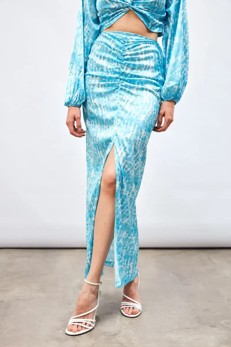 Yirtiq Detaylı Naqshli Midi Yubkani oddiy futbolka yoki bluzka bilan birlashtirib, kundalik uslub yarating. O'zingizga yoqqan poshnalar yoki sport poyabzallari bilan to'ldiring. Maxsus kunlar uchun esa, nafis bluzka va poshnalar bilan birlashtirib, nafis uslub yaratishingiz mumkin.