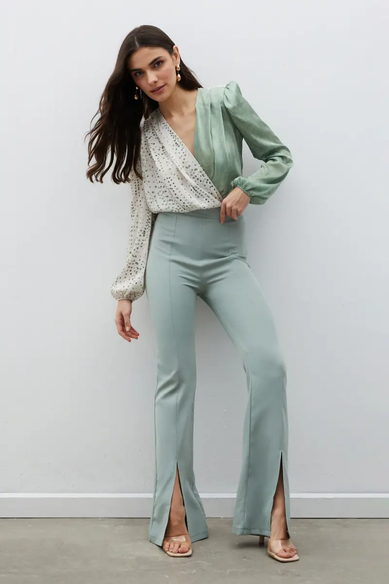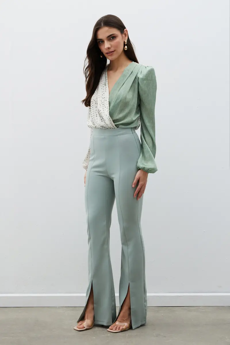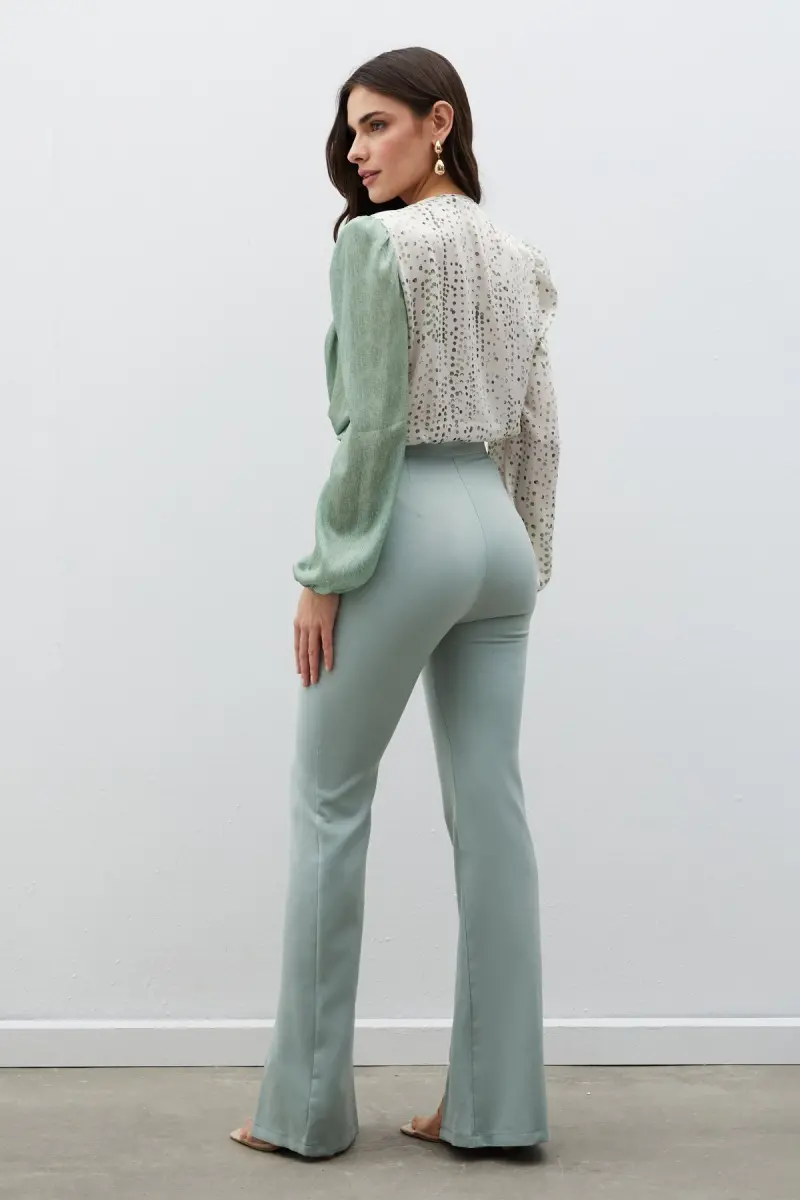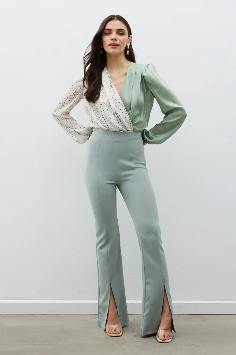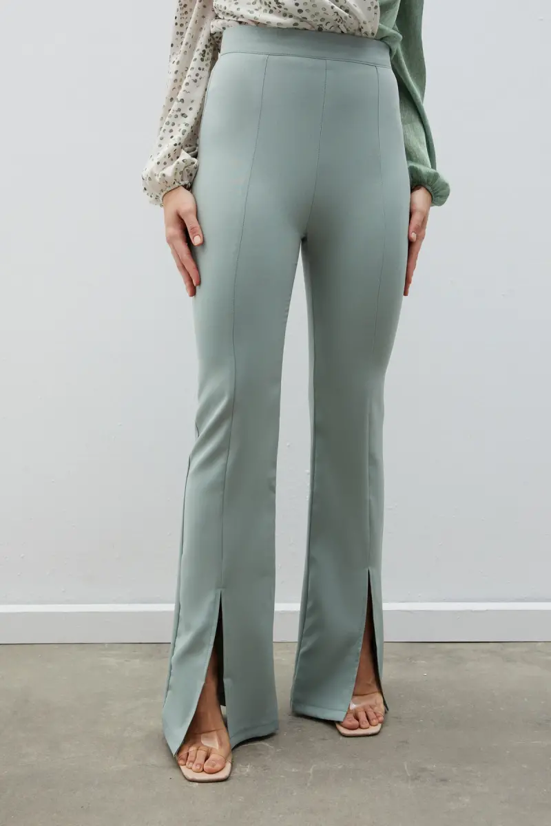 Yırtmaç Detaylı İspanyol Pantolon - Çağla Yeşili-ÇAĞLA YEŞİLİ