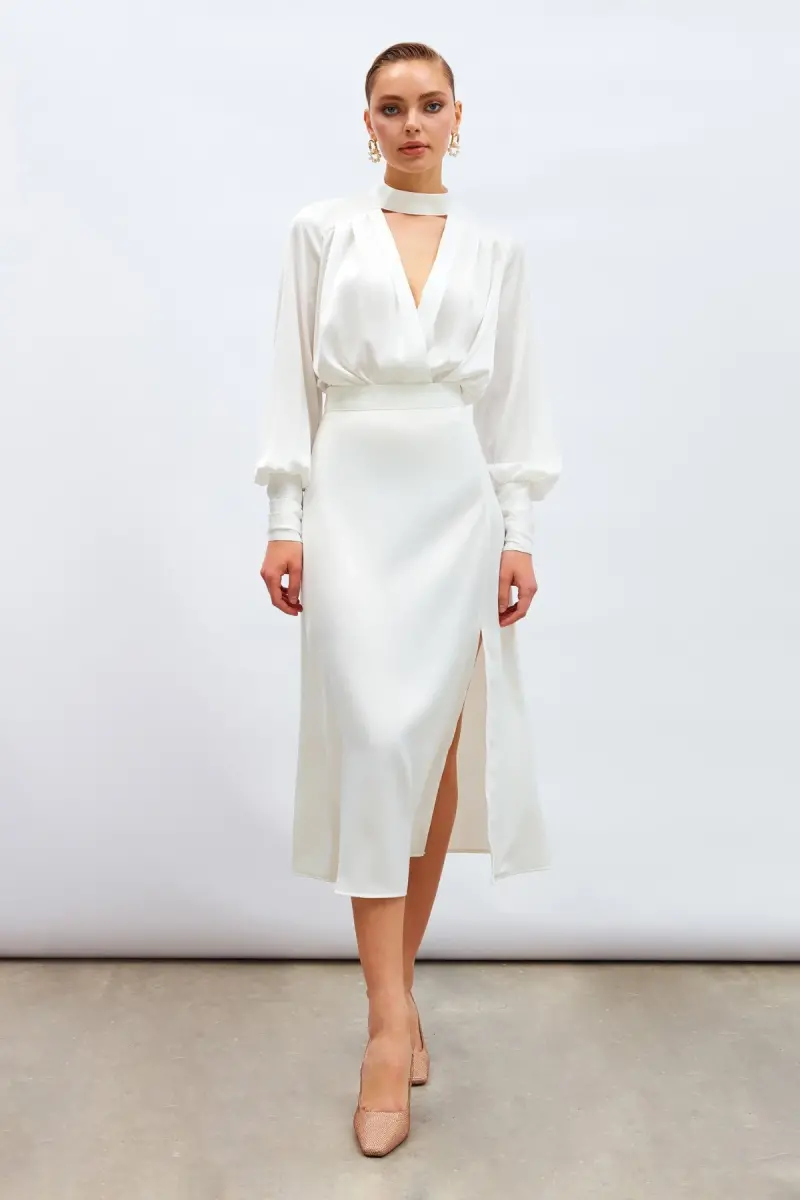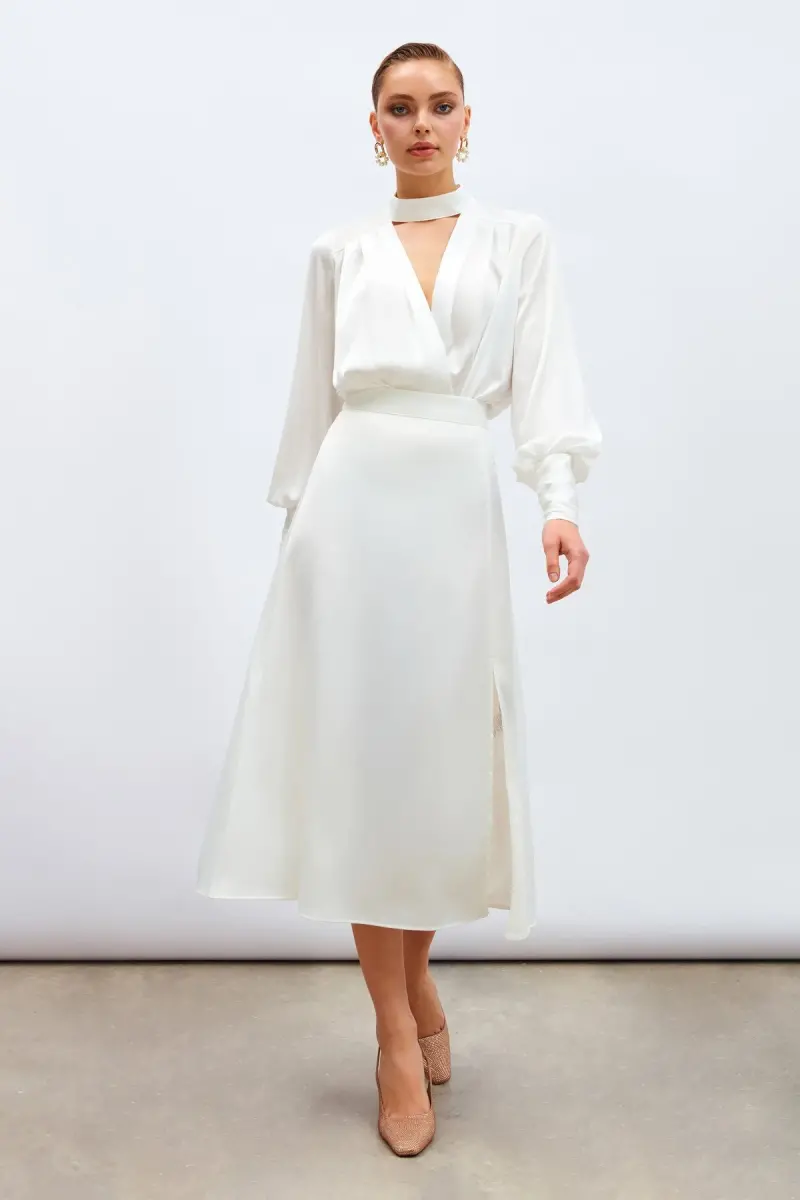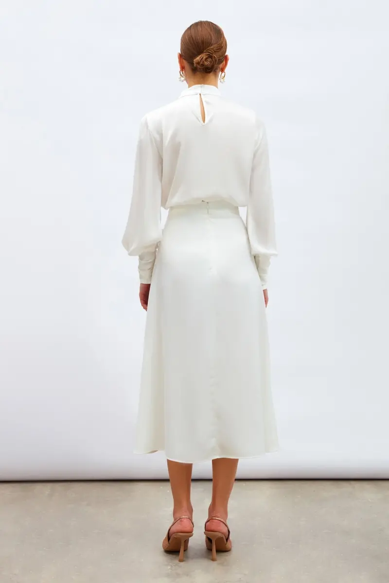 Yırtmaçlı Saten Etek ile şıklığınızı her yerde sergileyin!