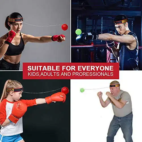 Faux Leather Imported UPGRADED VERSION - Based on the valuable feedback from customers, we improved the product and now we are proud to introduce YMX BOXING V2.0 Reflex Ball to you. The new version contains 2 comfortable headbands and 2 Primary training balls that allows 2 person compete each other, and provides 2 higher level balls for advanced training FUN FOR THE WHOLE FAMILY - Kids age 8+ and elders age up to 70+ are enjoying this competitive fun game, everyone are trying to beat each other by counting more consecutive punches GREAT WORKOUT WITHOUT NOTICING - Reflex Balls are the new yo-yo for people that enjoy fun activities while getting exercise on the side! The fun factor and mellow learning curve are surprisingly addictive, the time fly by and you don’t realize how much you’ve been training THE BEST WAY TO IMPROVE REACTION TIME & HAND-EYE COORDINATION! – It might not going to improve your punching or boxing technique, but it will definitely improve your reaction time and hand-eye coordination while providing a fun warm-up exercise EASY AND SAFE TO USE - We specifically designed 4 balls and the PRIMARY one is a very basic level for beginners easy to get the hang of, it doesn’t require boxing gloves as the balls are very light and soft and does not hurt even if it hit in the face