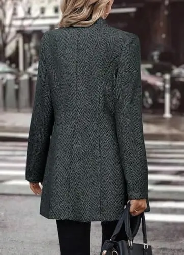 Женское двубортное пальто yoeasy с воротником-стойкой и одной пуговицей, сочетающее в себе элегантность и комфорт, станет незаменимой вещью в вашем гардеробе! Это стильное и практичное пальто, изготовленное из смесовой шерстяной ткани, согреет вас в холодную погоду, не жертвуя при этом вашим стилем. Идеально подходящее для весны, осени и ранней зимы, это пальто легко дополнит любой ваш наряд.Двубортный крой и одна пуговица придают ему классический вид, а длина миди и узор "елочка" добавляют изюминку. V-образный вырез и длинные рукава подчеркивают вашу элегантность, а длина до колен позволяет выглядеть современно и стильно. Однотонный цвет позволяет легко сочетать пальто с одеждой разных цветов и узоров.Это универсальное пальто можно носить как на каждый день, так и в офис, на особые мероприятия, оно позволит вам выглядеть стильно в любой обстановке. Это пальто идеально сочетается с базовыми футболками, майками, леггинсами, узкими джинсами, юбками, ботинками и туфлями на каблуках и является незаменимой вещью в уличной моде.Двубортное пальто yoeasy, которое можно легко носить для повседневной носки, в офис, для уличной моды, на вечеринку, в поход, на выходные, в клуб, в путешествие, на свидание, на прогулку, на фестиваль, на встречу с друзьями, на ужин, станет любимой вещью стильных женщин. С этим пальто, сочетающим в себе элегантность и комфорт, вы всегда и везде будете чувствовать себя особенной. Пожалуйста, внимательно ознакомьтесь с таблицей размеров перед заказом. Наше руководство по размерам следующее: S=US 4-6, M=US 8-10, L= US 12-14, XL=US 16-18, XXL=US 20-22.