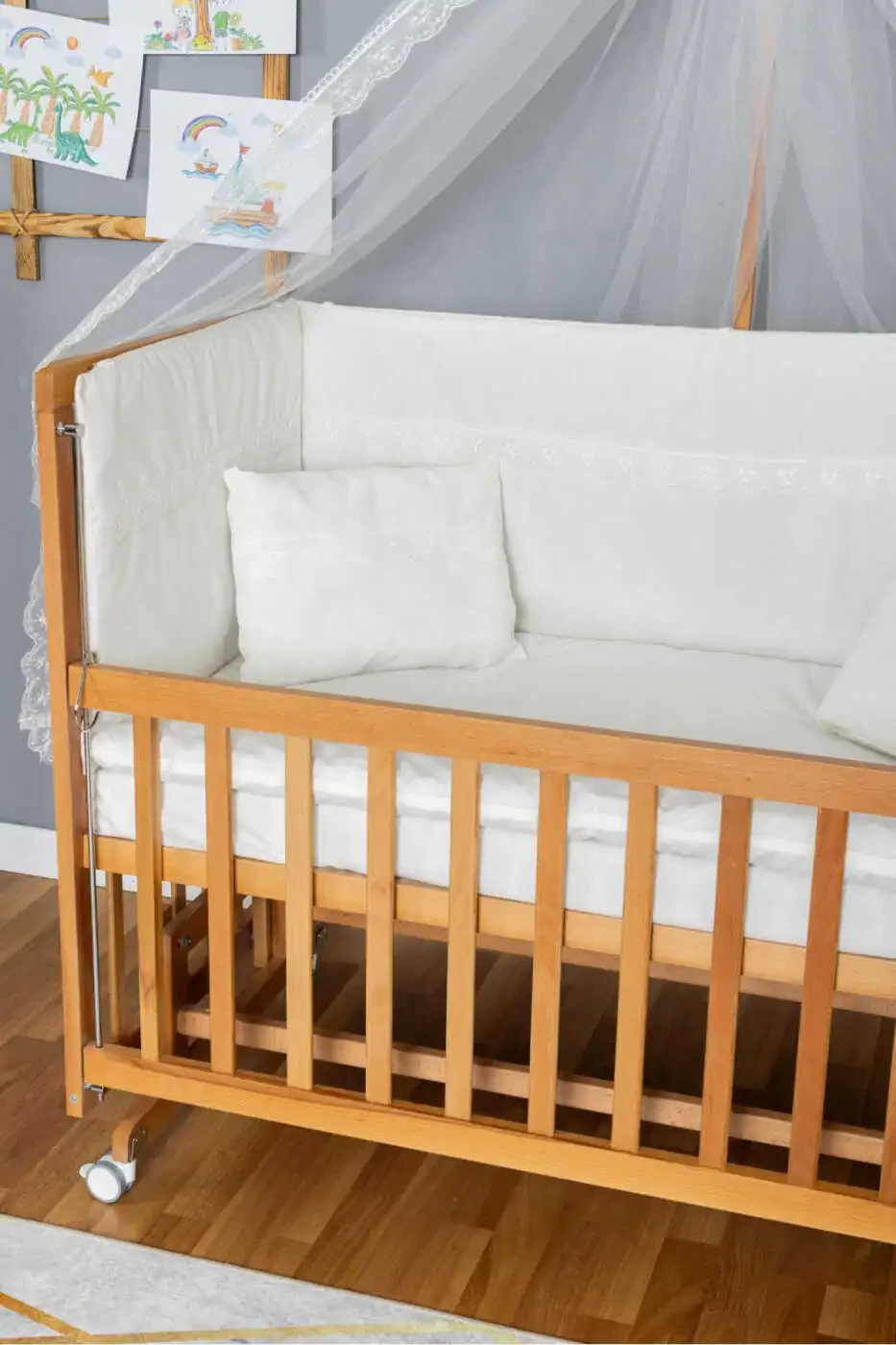 Оиланггизга хуш келибсиз дейиш учун мўлжалланган, замонавий ва хавфсиз уйқу майдонини тақдим этувчи ёғочдан ясалган Бешик Она ёни Бешик Верникли 70x130 - Крем Гўпур Уйқу Сети + Ётоқли + Теракли моделимиз BamgidooMobilya томонидан сизларга тақдим этилмоқда. 100 дан ортиқ миқдордаги захира билан акция нархида сотилаётган бу махсус бешик, чақалоғингизнинг қулай ва хотиржам ухлаши учун мўлжалланган. Ёғоч ва металл мебелларнинг Кафолатномаси тўғрисидаги Низомга мувофиқ, 2 йиллик кафолат муддати билан бирга юборилади. Маҳсулот расмдагидек ва маҳсулот номидаги барча таркиблар билан бирга етказиб берилади. Бир неча сотувчилар томонидан тақдим этилаётган маҳсулотлар орасида нарх, сотувчи рейтинги, етказиб бериш тезлиги, юк пули ва захира ҳолати каби мезонлар ҳисобга олинган ҳолда саралаш амалга оширилади. Бу бетакрор бешик, она ёни функцияси орқали чақалоғингизни кўзингиз олдида ушлаб туришингизни таъминлайди, шунингдек, амалий тезлик туфайли уни осонлик билан кўчиришингизга имкон беради. Крем рангли гўпур уйқу сетининг чақалоғингизнинг хонасига замонавийлик ва нафислик бахш этади. Юмшоқ ва қулай ётоқ, чақалоғингизнинг қулай уйқу тажрибасини бошдан кечиришига имкон беради. 70x130 см ўлчамлари билан, чақалоғингизнинг ўсиш босқичларига мос келадиган фойдаланиш майдонини тақдим этади. Унутманг, бу маҳсулотдан кўпи билан 3 дона буюртма бериш мумкин. 3 донадан ортиқ буюртмалар Trendyol томонидан бекор қилиниши мумкин. Корпоратив буюртмалар учун бошқа лимитлар қўлланилиши мумкин. Маҳсулотимиз 15 кун ичида бепул қайтариш имконияти билан хавфсиз харид тажрибасини тақдим этади. Батафсил маълумот учун қайтариш шартларини ўрганиш мумкин.