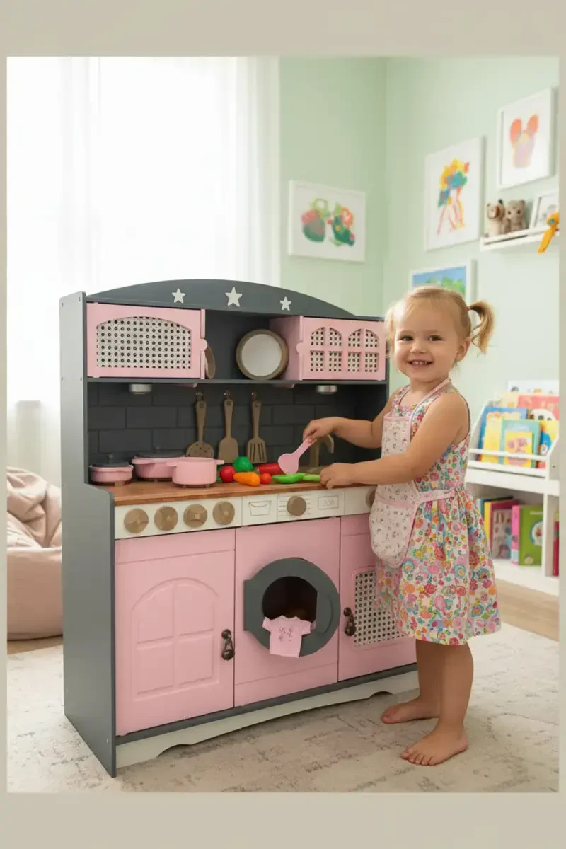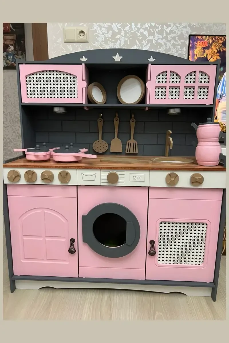 Kichkina oshpazlarning orzularini ro'yobga chiqarish uchun mo'ljallangan bu yog'och o'yinchoq oshxona to'plami bolalar uchun soatlab zavq va ijodkorlikni olib keladi. Rangli va yorqin dizayni bolalarning e'tiborini tortadi, shuningdek, ularning xayoliy kuchi va rol o'ynash qobiliyatlarini rivojlantirishga yordam beradi.