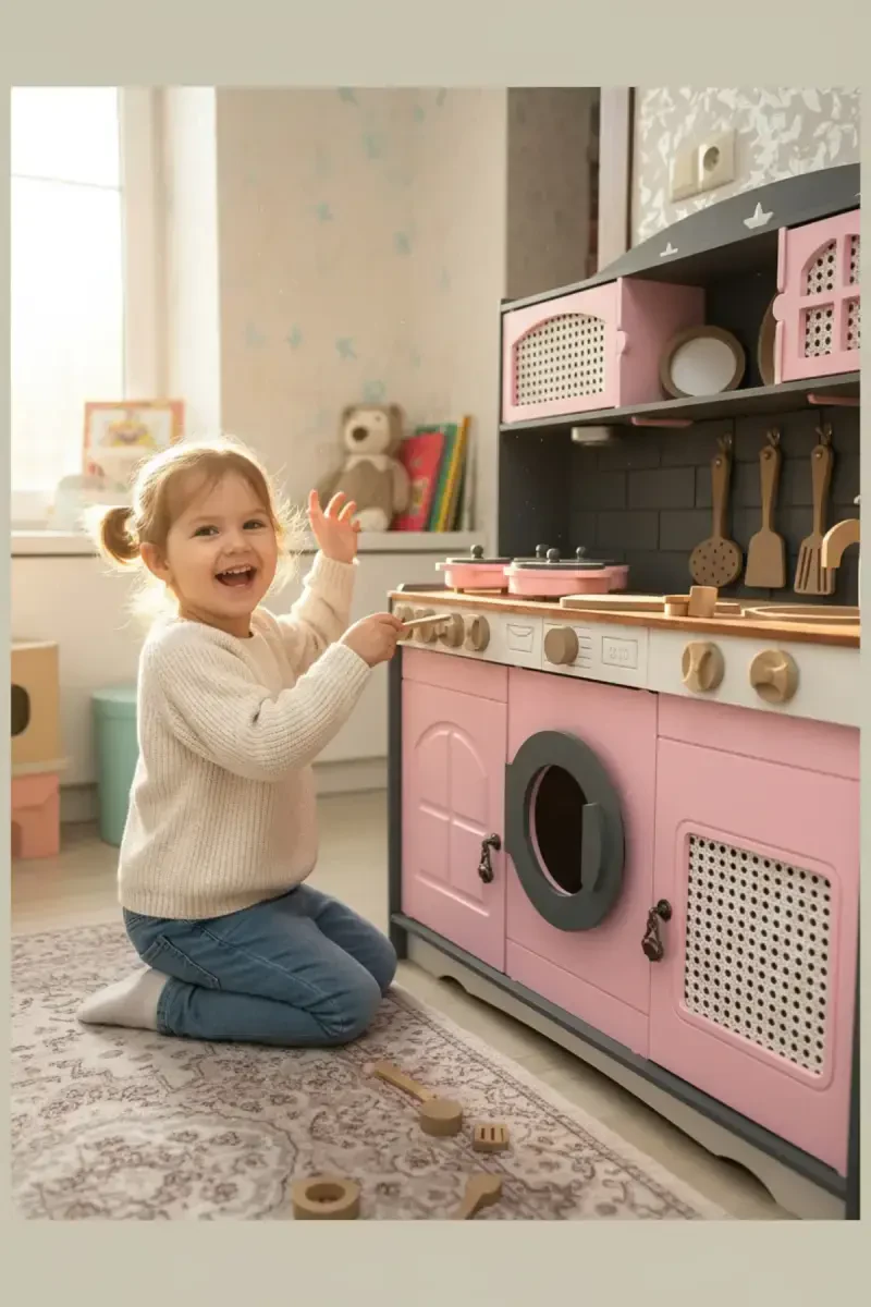 To'plamda mavjud bo'lgan choy qaynatgich, qozon, tova va boshqa oshxona anjomlari haqiqiy tarzda loyihalashtirilgan, bu esa bolalar o'ynash paytida ovqat pishirish va xizmat qilish kabi kundalik faoliyatlarni taqlid qilishga imkon beradi, shu bilan birga ularning xayoliy kuchi va nozik motor qobiliyatlarini rivojlantiradi. Yog'ochdan yasalganligi sababli, u bolalaringiz uchun xavfsiz va bardoshli o'yin tajribasini taqdim etadi.