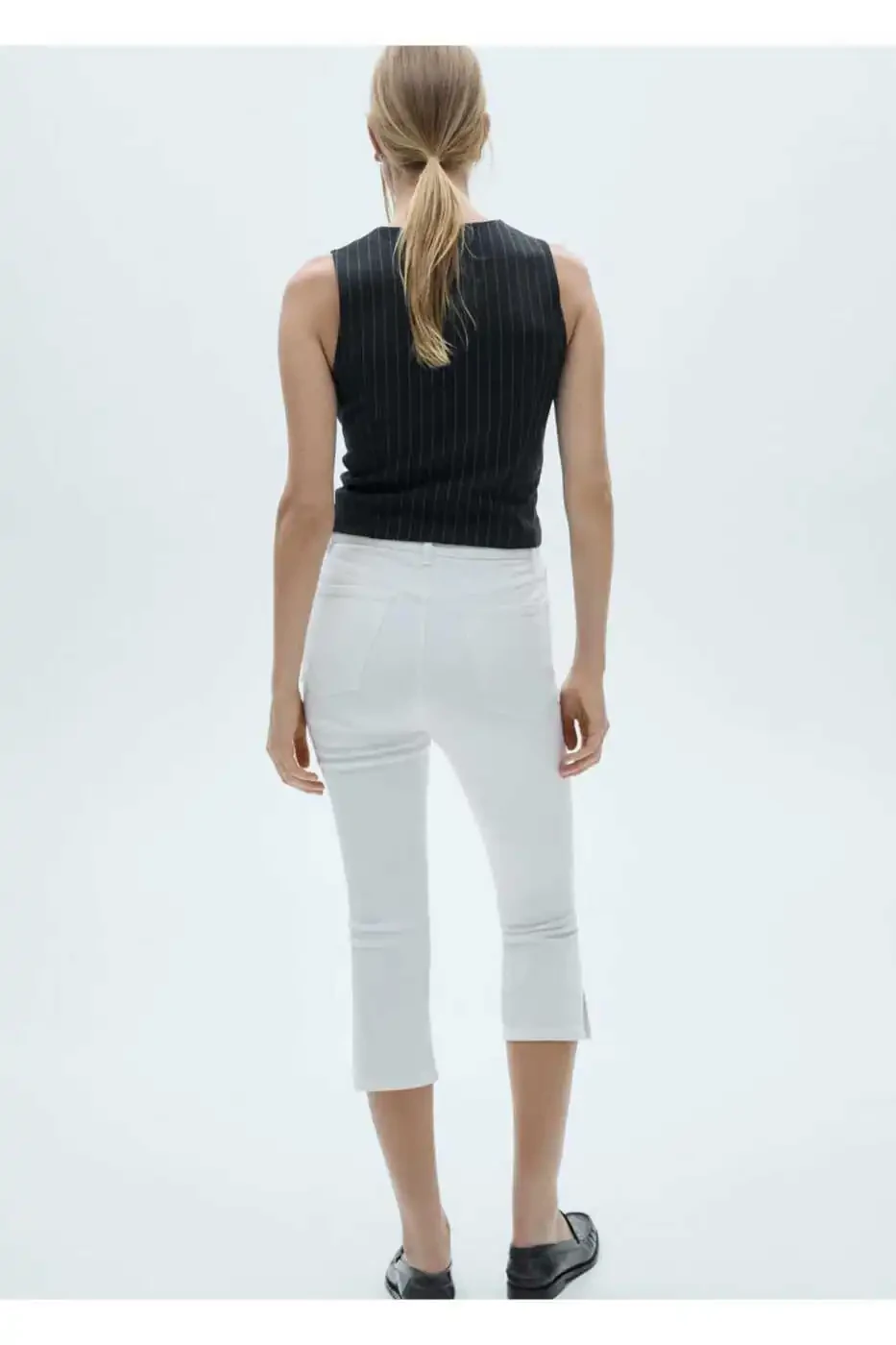 **Yon yirtilgan kapri jinsi shimlar**Trendyol tomonidan yuboriladigan ushbu mahsulot, kampaniya narxida, 5 donadan kam stok bilan sotuvga qo‘yilgan. Bitta mahsulotni bir necha sotuvchi sotuvga qo‘yishi mumkin. Bir necha sotuvchi tomonidan sotuvga qo‘yilgan mahsulotlar narx, sotuvchi reytingi, yetkazib berish holati, aktsiyalar, yetkazib berish narxi va yetkazib berish variantlari, stok va toifa ma'lumotlari kabi mezonlar asosida tartiblangan.Ushbu mahsulotni maksimal 10 dona buyurtma berish mumkin. 10 donadan ortiq buyurtma berilganda Trendyol tomonidan bekor qilinishi mumkin. Belgilangan ushbu limit korporativ buyurtmalar uchun amal qilmaydi va bunday buyurtmalar uchun turli limitlar belgilashi mumkin.Mahsulot 15 kun ichida bepul qaytarilishi mumkin. Qaytarish shartlari to‘g‘risida batafsil ma'lumot uchun bosing.**Jinsi -- Priscila*** **Material:** Jinsi tipdagi paxta matolari* **Kesimi:** Kapri* **Beli:** Oddiy bel* **Xususiyatlari:** Kamar ilgaklari, beshta cho‘ntak, fermuar va tugmali, yon yirtiqlari* **To‘plami:** MNG Heritage* **Ilhom manbai:** 90-yillarning ramziy dizaynlar* **Matoning tarkibi:** 91% paxta, 7% poliester, 2% elastan* **O‘lchamlari:** Ichki cho‘ntak uzunligi: 55,4 sm, yon cho‘ntak uzunligi: 87 sm**Parvarish bo‘yicha ko‘rsatmalar:*** Qisqa santrifüjli mashinada maksimal 30°C da yuving* Oqartiruvchi vositalardan foydalanmang* Maksimal 110°C da dazmollang* Quruq tozalash mumkin emas* Quritgich mashinasida quritilmaydi