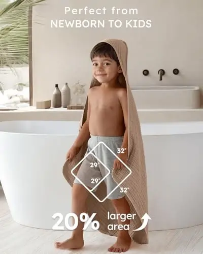 [Soft and Absorbent] - 100% high quality muslin organic cotton, the best fabric for babies, makes the baby bath towel super soft than regular cotton towel. It absorbs the water off baby quickly and keeps baby warm after baths. [Excellent Durability] - The 6 layers thickness muslin design is long-lasting enough for everyday use. Sized in 32 x 32 inches, the hooded baby towels are suitable for newborns, infants, toddlers, and small kids up to 3 years old. [Easy Care] - Our muslin baby towels with hood will keep its softness, thickness and color even after many washes, machine washable and quick dry. The set of 2 baby towels for newborn is more convenient for daily change and easy clean up. [Versatile Usage] - Not only used as baby bath towel, it can also be used as baby blanket, swaddling, changing mat cover. Wrap your little one in this soft baby hooded towel after bathing him in a tub, at the pool or beach. [Perfect Baby Gift] - As a lovely and practical baby essential, our hooded baby towels for boys and girls is a perfect unisex baby shower gift, or baby registry gift!