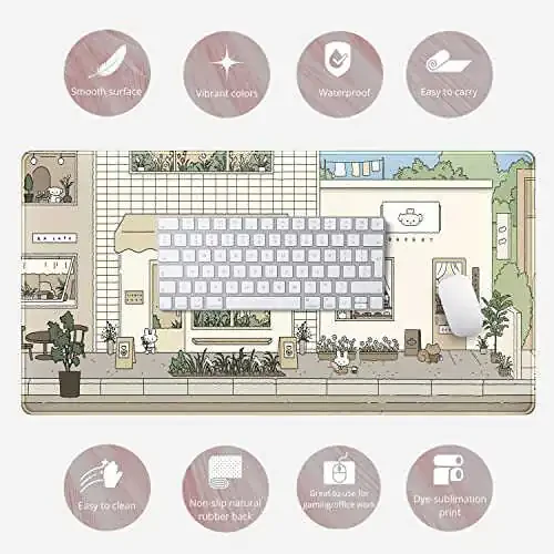 Ish joyingizni kawaii yoqimliligi bilan yoritib oling! Bu ekstra katta stolda yoshlik, yoqimli quyonlar va ayiqlar tasvirlangan pastel ranglarda bajarilgan yoqimli anime dizayniga ega. Bu sizning ish stolingizni, noutbukingizni va boshqa narsalarni himoya qilish uchun etarlicha katta. Yumshoq va qulay yuzasi sichqonchangiz uchun silliq tajriba yaratadi va qo'llaringizning charchaganidan saqlaydi.