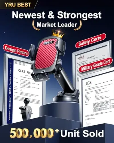 YRU True Military-Grade [360° Rotation Suction] 2025 Ultimate Car Phone Holder Mount 【90+LBS Safest Strongest & Patent Certs】 Dashboard Windshield Vent for iPhone 17 16 Pro Max Samsung, Red.**Ürün Açıklaması**Introducing the YRU True Military-Grade 360° Rotating Suction 2025 Model Ultimate Car Phone Holder! This product is designed to offer the safest and strongest grip on the market. With patented certifications and a 90+ LBS carrying capacity, it securely holds your phone even in the most challenging road conditions. Its red color adds a sporty and stylish touch to your vehicle. Whether you're using an iPhone 17, 16 Pro Max, or a Samsung phone, this holder is perfectly compatible with all smartphones. Thanks to its suction cup design, it can be easily mounted on the dashboard, windshield, or air vent. The 360-degree rotation feature allows you to position your phone at any angle, making it much easier to follow navigation, make calls, or control music while driving. The YRU True Military-Grade car phone holder combines durability, safety, and ease of use to take your driving experience to the next level. Thanks to its superior material quality, it offers trouble-free use for many years. It eliminates worries about your phone falling or slipping while driving, allowing you to focus entirely on the road. With its stylish design and useful features, this holder is an accessory that every car owner should have. While the red color complements your car's interior design, its strong grip and flexible adjustment options enhance your driving comfort. The YRU True Military-Grade 360° Rotating Suction Car Phone Holder is more than just a phone holder; it's an investment that increases your driving safety and comfort. With its patented certifications and military-grade durability, this product stands out from its competitors and offers you the best performance.**Ürün Özellikleri*** 360 Degree Rotation: You can adjust your phone to any angle you want.* Strong Suction Cup: Securely holds your phone with a carrying capacity of 90+ LBS.* Patented Certifications: The safety and quality of the product have been tested and approved.* Military-Grade Durability: Designed to withstand the toughest conditions.* Universal Compatibility: Compatible with iPhone 17, 16 Pro Max, Samsung, and other smartphones.* Versatile Mounting: Can be mounted on the dashboard, windshield, or air vent.* Stylish Design: Adds a sporty look to your car with its red color.**Ek Bilgiler**The YRU True Military-Grade 360° Rotating Suction Car Phone Holder is designed to enhance your driving safety and facilitate your phone usage. The product is easy to install and requires no tools. Thanks to the strong grip of the suction cup, your worries about your phone falling or slipping are eliminated. In addition, the 360-degree rotation feature allows you to position your phone at any angle you want, making it much easier to follow navigation, make calls, or control music.