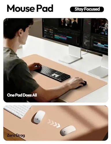 Сделайте свое рабочее пространство стильным и функциональным с помощью YSAGi Leather Desk Protector! Этот защитный коврик для стола не только защищает ваш стол от царапин, пятен и пролитий, но и улучшает ваши впечатления от работы. Изготовленный из высококачественного материала PU кожи, этот продукт долговечен и долговечен. Цвет латте идеально подходит для любого офисного или домашнего декора и придает вашему рабочему пространству теплую и уютную атмосферу. Размеры 23,6" x 13,8" предлагают достаточно места как для клавиатуры, так и для мыши, создавая удобную и продуктивную рабочую среду. Благодаря нескользящей поверхности он остается устойчивым на столе и предотвращает нежелательное скольжение. Эта функция особенно полезна для предотвращения отвлечения внимания в часы интенсивной работы. Водонепроницаемая функция предотвращает повреждение стола случайно пролитыми жидкостями. Его можно легко очистить с помощью простого куска ткани, что экономит ваше время и всегда обеспечивает чистое рабочее пространство. Благодаря своей большой поверхности этот защитный коврик для стола может использоваться не только как защитный коврик, но и как удобный коврик для мыши и подставка для ноутбука. Он предлагает идеальную гладкую поверхность для письма, что облегчает ведение заметок, рисование или другие творческие задачи. YSAGi Leather Desk Protector - это не только практичный продукт, но и аксессуар, который придает вашему рабочему пространству изысканный вид. Он подходит для использования как в офисе, так и дома, и идеально подходит для любой рабочей среды. Это идеальный выбор для повышения эффективности работы и придания вашему рабочему пространству более организованного и стильного вида.