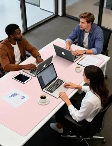 YSAGi Leather Desk Pad Protector, Office Desk Mat, Large Mouse Pad, Non-Slip PU Leather Desk Blotter, Laptop Desk Pad, Waterproof Desk Writing Pad for Office and Home (Light Pink, 55" x 24")