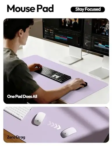 **Transform Your Workspace with YSAGi Leather Desk Pad Protector: Elegance, Comfort, and Protection in One!**Product DescriptionYSAGi Leather Desk Pad Protector is not just a desk mat; it's a versatile solution that will add a sophisticated touch to your workspace, boost your productivity, and protect your belongings. With the calming tone of light purple, you can create a serene and inspiring atmosphere in your office or home, while the wide surface allows you to work, write, and play comfortably. Measuring 119 x 43 cm (47" x 17"), this desk mat provides ample space for your keyboard, mouse, and other office essentials, eliminating clutter and providing an organized workspace. Made of high-quality PU leather, the YSAGi desk mat not only looks stylish but also stands out with its durability and longevity. Its waterproof surface is resistant to spills and stains, so you can enjoy your drink or food comfortably at your desk. It is also extremely practical to clean thanks to its easy-to-wipe feature. The non-slip base keeps the mat stable on your desk, eliminating the problem of slipping or moving, even during your most intense work moments. This way, you can focus on your work without being distracted. YSAGi Leather Desk Pad Protector not only protects your desk but also provides comfort by supporting your wrists and hands, even during long work sessions. Its smooth surface makes it easy to use the mouse and creates an ideal surface for precise movements. Compatible with both optical and laser mice, this desk mat is an excellent choice for gamers and professionals. Choose YSAGi Leather Desk Pad Protector to personalize your workspace and make it more efficient. With its aesthetic appearance, practical use, and durability, this desk mat will be an indispensable accessory for both you and your desk. Bring elegance and functionality together in your workspace with the YSAGi Leather Desk Pad Protector. While creating a more focused and productive work environment with the soothing effect of the light purple color, enjoy the comfort offered by high-quality materials. Protect your desk from scratches, spills, and other potential damage, and own a product that you can use for many years. YSAGi Leather Desk Pad Protector will improve your work experience and add a stylish touch to your office or home decor.Product Features* High-quality PU leather material* Waterproof and easy-to-clean surface* Non-slip base* Wide surface area (119 x 43 cm / 47" x 17")* Light purple color* Compatible with optical and laser mice* Provides wrist and hand support* Durable and long-lasting* Adds elegance to the workspace* Easily portable and storable* Protection against scratches* Ideal for office and home use* Helps increase productivity* Prevents clutter* Smooth surfaceAdditional InformationThe product can be easily cleaned with a damp cloth. Avoid using bleach or abrasive cleaning agents. Avoid exposure to direct sunlight, as this may cause the color to fade. The product may smell briefly after being removed from its packaging, this is normal and will disappear with ventilation. It is recommended to clean the product regularly and store it properly for long life.