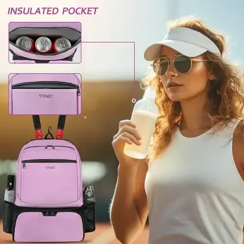 Ytonet Tennis Bag Tennis Backpack-ning o'ziga xos xususiyatlaridan biri - uning old qismida joylashgan maxsus izolyatsiyalangan cho'ntagidir. Bu cho'ntak ichimliklaringizni sovuq ushlab turish yoki oziq-ovqatlaringizni yangi saqlash uchun mo'ljallangan. Yuqori zichlikdagi ko'pik va alyuminiy qatlami tufayli ichimliklaringiz bir necha soat davomida salqin bo'lib qoladi, oziq-ovqatlaringiz esa yangiligini saqlaydi. Suv o'tkazmaydigan va oson tozalanadigan astar sizni erigan muz yoki suv sizishi kabi muammolar bilan kurashishdan xalos qiladi. Bundan tashqari, siz ushbu cho'ntakka terlangan kiyimlaringizni yoki sochiqlaringizni qo'yishingiz va boshqa quruq narsalaringizning ifloslanishiga yo'l qo'ymasligingiz mumkin.