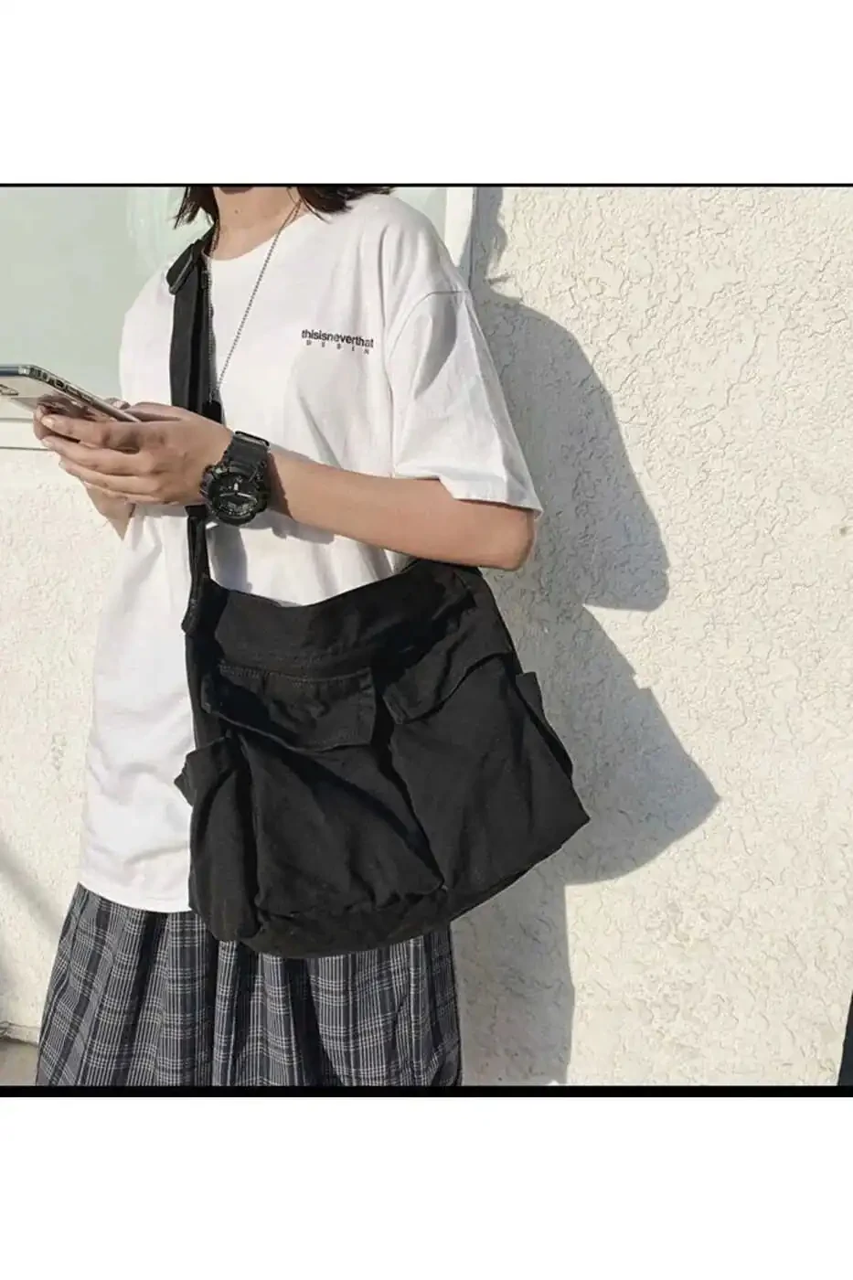 yuk tashuvchi cho'ntakli sumka, pochta sumkasi, unisex sumka, qora sumka, keng sumka, kundalik sumka, sayohat sumkasi, maktab sumkasi, universitet sumkasi, ish sumkasi
