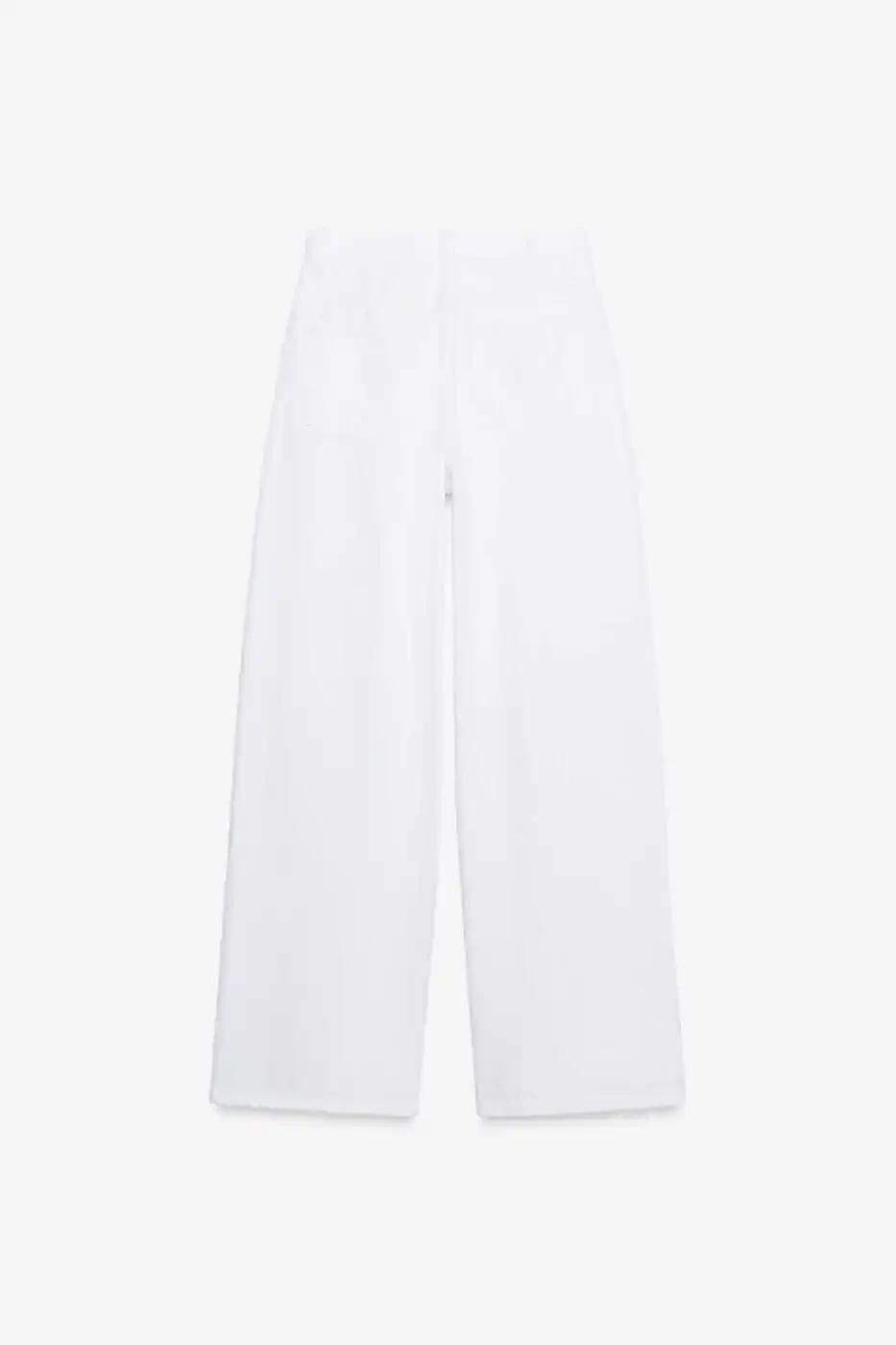 Sizi şıklığı ve konforu bir arada sunan, benzersiz tarzınızı yansıtan Yüksek Bel Çapraz Kesim TRF Geniş Paça Jean ile tanıştırıyoruz! Beyaz rengiyle yaz aylarının ferahlığını ve modern stilini yakalayın. Bu çarpıcı jean, yüksek beliyle vücudunuzu kusursuz bir şekilde sararken, geniş ve ekstra uzun paçalarıyla hem rahatlığı hem de trend bir görünümü bir araya getiriyor. Sadece şık olmakla kalmayan, aynı zamanda günlük kullanım için de ideal olan bu jean, çapraz kesim detayıyla diğerlerinden ayrılıyor. Asimetrik tasarımı ve göz alıcı metal düğmeleriyle tarzınıza farklı bir boyut katacak. Beş cepli yapısıyla da fonksiyonelliği ön planda tutuyor. İster şık bir bluzle, ister spor bir tişört ile kombinleyin; Yüksek Bel Çapraz Kesim TRF Geniş Paça Jean, her zaman şık ve özgün görünmenizi sağlayacak. Kaliteli kumaşı ve mükemmel kalıbıyla uzun yıllar boyunca gardırobunuzun vazgeçilmez parçalarından biri olacak. Bu yazın en trend jean modeliyle stilinizi yükseltin ve kendinizi özgürce ifade edin! Yüksek kaliteli malzemelerden üretilen bu jean, uzun süreli kullanım için dayanıklılık sunar. Kolay temizliği ve bakımıyla da zamandan tasarruf etmenizi sağlar. Farklı kombinasyonlar deneyerek kendi tarzınızı oluşturun ve bu benzersiz jean ile dikkatleri üzerinize çekin. Rahatlığı ve şıklığı bir arada arayanlar için mükemmel bir seçenek olan Yüksek Bel Çapraz Kesim TRF Geniş Paça Jean, tarzınıza yeni bir soluk getirecek.