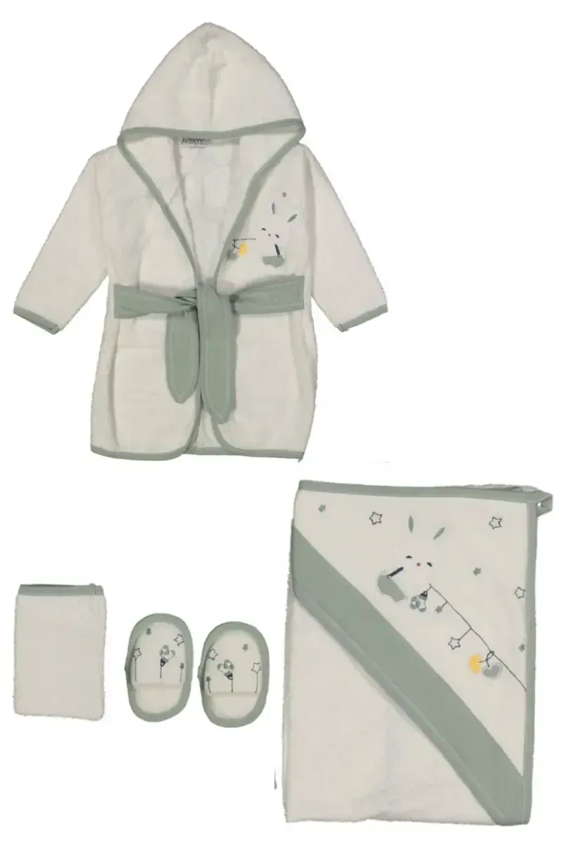 Yulduzli Quyon Geye Chaqaloq Sochig'li Xalat To'plami Cherub Baby kafolati bilan taqdim etiladi. Mahsulotning organik tuzilishi va antibakterial xususiyatlari bolangizning salomatligini birinchi o'ringa qo'yadigan ota-onalar uchun ideal tanlovdir. 30 daraja qisqa dasturda yuvish tavsiya etiladi. Mahsulot ranglarining uzoq vaqt davomida yorqin bo'lishi uchun oqartirgichdan foydalanishdan saqlaning. Mahsulotni birinchi marta ishlatishdan oldin yuving. To'plam bolangizning cho'milgandan keyingi qulayligi va baxtini oshirish uchun mo'ljallangan. Maxsus qutisi bilan yuborilganligi sababli, tug'ilgan kun, chaqaloqni ko'rish yoki boshqa maxsus kunlar uchun ajoyib sovg'a variantidir.