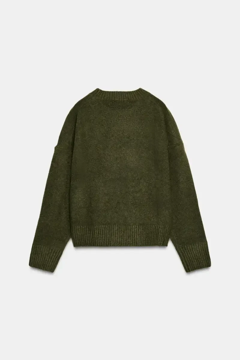 Yumshoq triko tuzilishi bilan kun bo'yi qulaylik taqdim etadigan, qulay bichimli, velosiped yoqali, uzun yengli kozok. %50 Akril %50 Paxta.