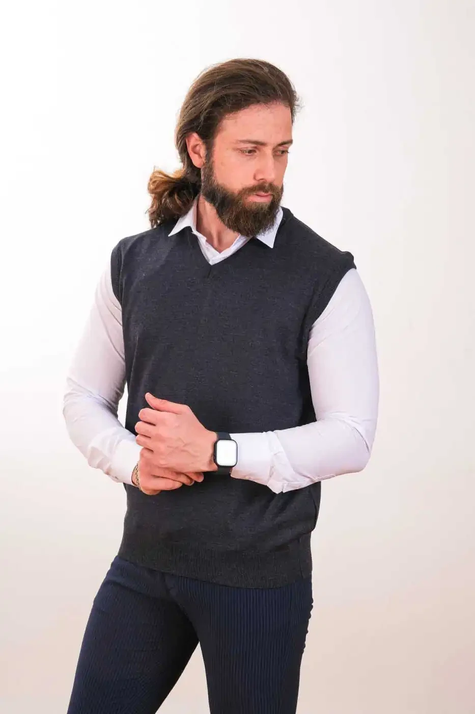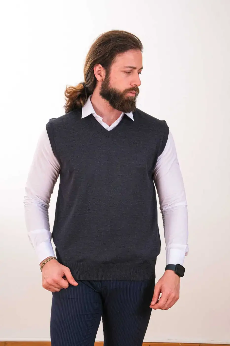 Yünlü Kolsuz Triko Süveter, günlük hayatta, özel günlerde veya evde keyifli vakit geçirirken her zaman şık görünmenizi sağlayacak. Klasik ve zamansız tasarımı, farklı giyim tarzlarına uyum sağlar ve her kombine kolayca entegre olur.