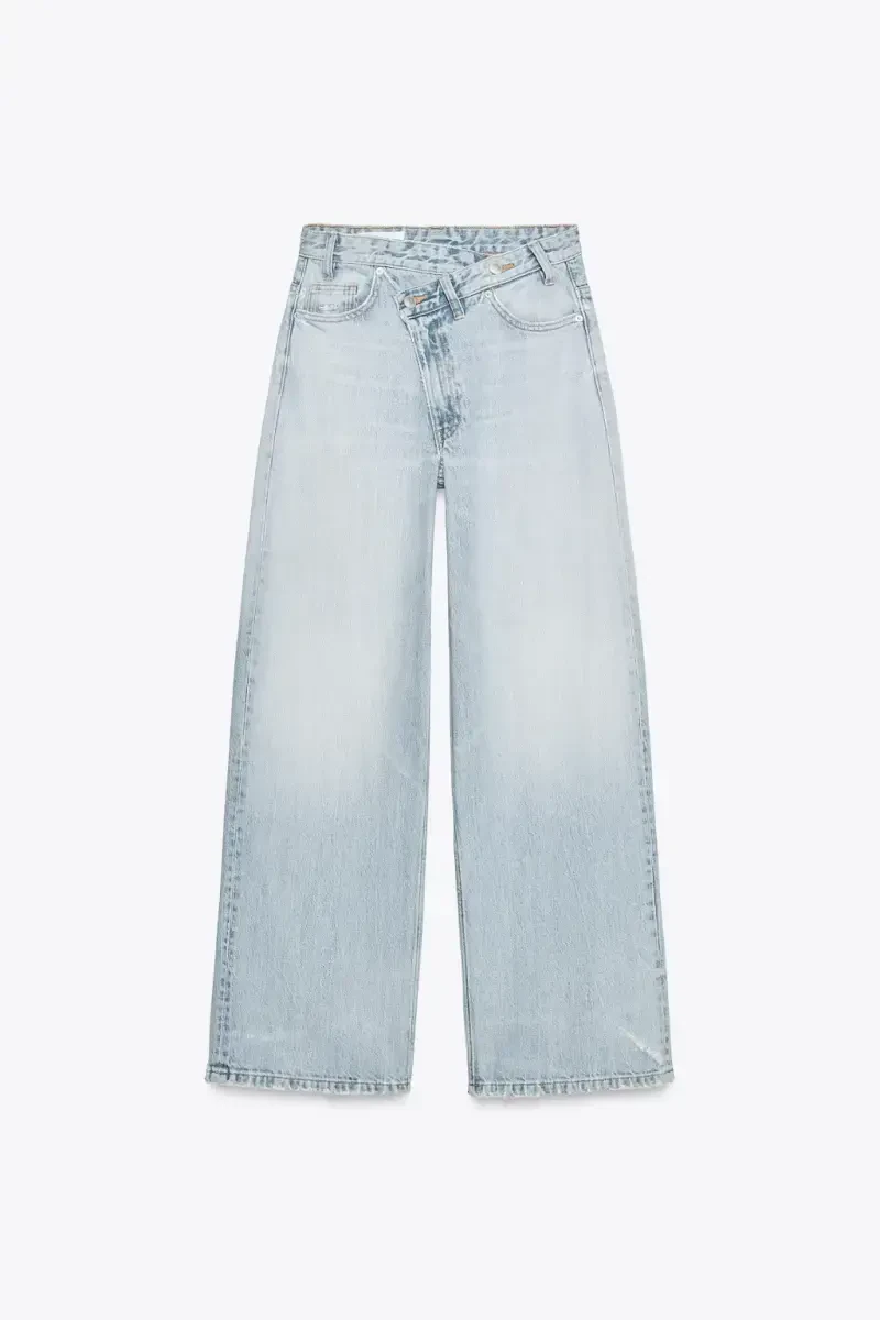 Yuqori belli jinsi, chorsi kesimli jinsi, keng paqli jinsi, och ko'k jinsi, TRF jinsi, denim jinsi, ayollar jinsisi, trenddagi jinsi, zamonaviy jinsi, qulay jinsi