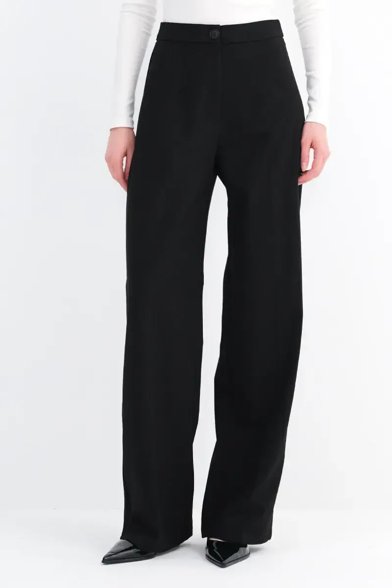 Yuqori Bel Keng Oyoqli Shim Pn8130 - Dk14-Qora