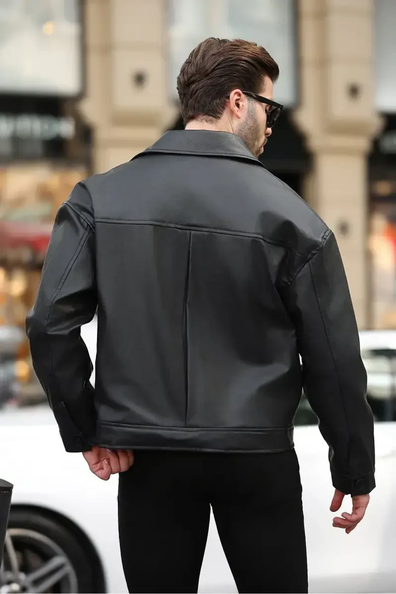 Uslubingizni yuqori darajaga ko'tarishga tayyor bo'ling! Premium sifatli teri materialidan tayyorlangan, su o'tkazmaydigan xususiyatga ega bo'lgan oversize qora erkaklar terisi ko'ylagi, uslub va qulaylikning mukammal uyg'unligi.