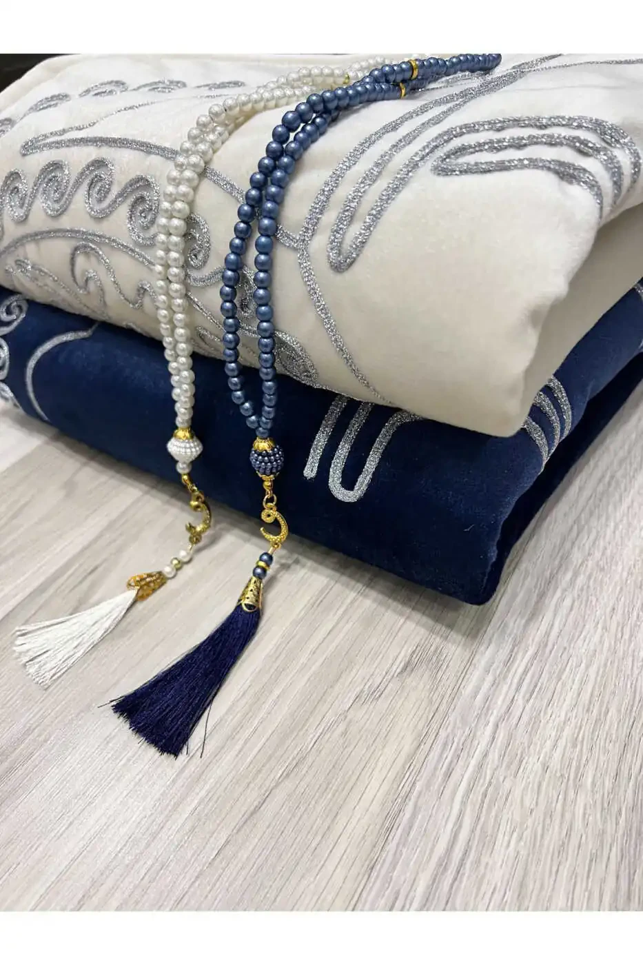 Ikki alohida namoz gilamiga, maxsus kelin va kuyovlar uchun tasbehga ega bo'lgan bu to'plam to'ylar yoki nishonlar kabi maxsus kunlar uchun ajoyib sovg'adir. Shuningdek, u jahoz uchun ham ajoyib tanlov bo'lib, yangi turmush qurgan juftliklarning hayotiga baraka va baxt keltiradi.