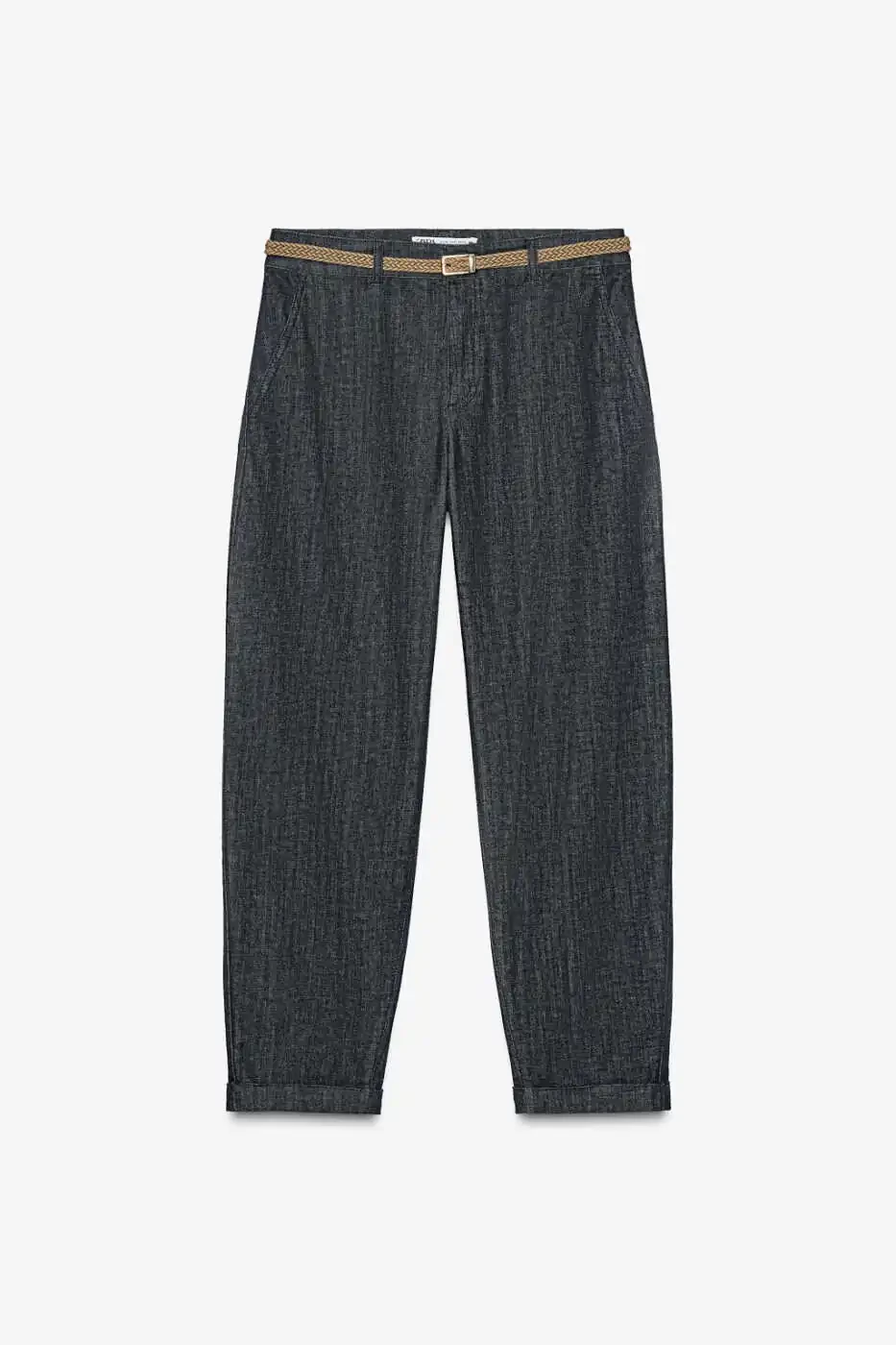 Z1975 Тўқима Камарли Chino Деним Шими - Кўк