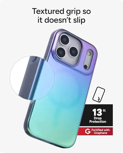 TOUGH PROTECTION, IRIDESCENT DESIGN - The ZAGG Milan Snap Case for iPhone 17 Pro combines nature‑inspired style with proven protection. Made with Graphene, harder than diamond and 200x stronger than steel, it protects from drops up to 13ft (4m)* FASHION‑FORWARD STYLE - Slim and lightweight, this cell phone case is inspired by nature’s hues and patterns, complementing your look while showing off your iPhone and keeping it fully protected. Clean lines and luminous tones add city‑worthy appeal WIRELESS CHARGING COMPATIBLE – This phone case is MagSafe-compatible for smooth wireless charging. No need to remove the phone cover to charge your device. Just place your phone on your wireless charger for quick and efficient charging SECURE GRIP WITH TEXTURED EDGES - Subtly textured edges of this iPhone case blend into the design while providing a no‑slip grip, making it easier to pick up, hold, or retrieve your phone from your bag or pocket in daily use with ease SUSTAINABLE PROTECTION - Made with up to 84% recycled materials**, Milan Snap delivers durable, stylish protection that’s better for the planet while keeping your iPhone safe, secure, and looking great through everyday use and regular handling