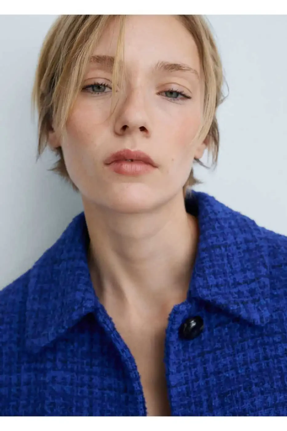 Жакет из твида на пуговицах, смесь хлопка, твидовая ткань, рубашечный воротник, длинные рукава, застежка на пуговицы, два кармана, Dorothy, короткая длина, доступная цена