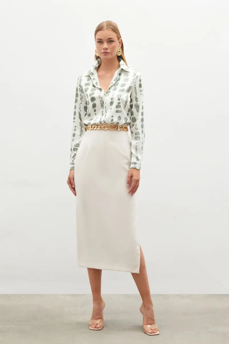 Zanjirli Kamarli Qalam Yubka bilan nafislik va qulaylikni birga his eting. Bej rangining go'zalligini o'zida mujassam etgan bu yubka, zamonaviy dizayni va nafis detallari bilan garderobingizning ajralmas qismiga aylanadi. Qalam yubka bichimi, tana chiziqlarini mukammal tarzda namoyon etsa, midi uzunligi bilan ham kundalik foydalanishga, ham maxsus tadbirlarga mos variantni taqdim etadi. Yubka %63 paxta, %34 polyester va %3 likra aralashmasidan tayyorlangan. Paxtaning tabiiy to'qilishi teringizga nafas olish imkonini bersa, polyester matoning chidamliligi va likraning elastikligi tufayli kun bo'yi qulay foydalanishni ta'minlaydi. Matoning bu maxsus aralashmasi, yubkaning shaklini uzoq vaqt saqlashga yordam beradi va ajin tushishga qarshi mustahkam tuzilishni taqdim etadi. Tuz naqshi va bej rangi, yubkani osonlik bilan moslashtirish imkonini beradi. Uni xohlasangiz, nafis bluzka bilan, xohlasangiz sport uslubidagi futbolka bilan to'ldirib, turli xil uslublar yaratishingiz mumkin. Zanjirli detallarga ega kamari, yubkaga zamonaviy va nafis teginishni qo'shsa, belingizni ta'kidlab, yanada nozik siluet yaratishingizga yordam beradi. Fermuarli tuzilishi tufayli osongina kiyiladi va yechiladi. Yubkaning ichki qismida joylashgan astar, kiyim konforini oshiradi va matoning teringiz bilan bevosita aloqasini oldini olib, yanada qulay foydalanishni taqdim etadi. Normal bel bichimi, har qanday tana turiga mos keladi va kun bo'yi qulay bo'lishingizni ta'minlaydi. Zanjirli Kamarli Qalam Yubka, ish hayotida, maxsus tadbirlarda yoki kundalik foydalanishda o'z nafisligingizni oldinga chiqaradigan mukammal tanlovdir. Ham klassik, ham zamonaviy uslubni birlashtirgan bu yubka, garderobingizning eng sevimli qismlaridan biriga aylanishga da'vogar. Bej rangining zamonsizligi va qalam yubka bichimining nafisligi bilan har doim trendda bo'lishda davom etasiz. Ushbu yubka bilan uslubingizni to'ldiring va har qanday muhitda o'zligingizni ko'rsating.