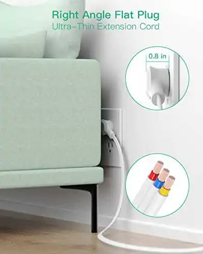 Провод с защитой от скачков напряжения - 9 широко расположенных розеток, настенный монтаж, 3 боковых розетки с удлинителем на 5 футов, плоская вилка для дома и офиса