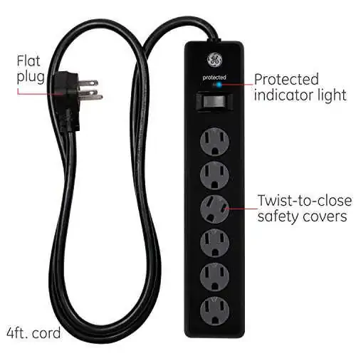 Защитник от перенапряжения GE с 6 розетками - 1300 джоулей, удлинитель 8 футов - Защитите свою электронику