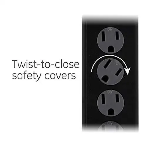 Защитник от перенапряжения GE с 6 розетками, удлинитель 8 футов, сетевой фильтр, 1300 джоулей, плоский штекер, защитные крышки с поворотным замком, индикатор защиты, сертифицирован UL, черный, 33662