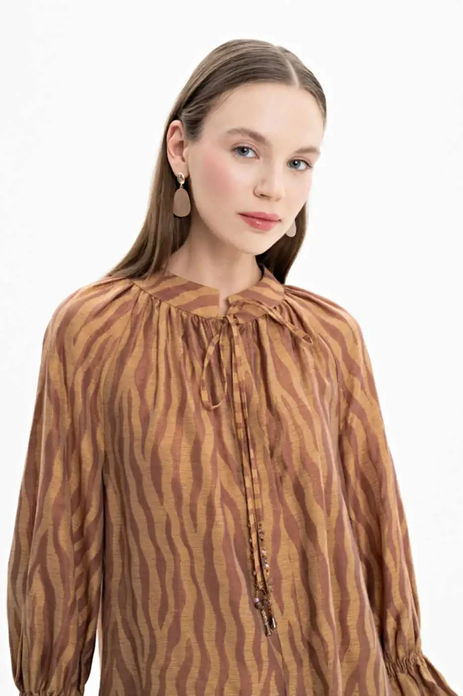 Zebra naqshli bog'lamli tunika bilan uslubingizni aks ettirishning eng chiroyli usulini kashf eting! Ushbu maxsus dizayndagi tunika, zamonaviy va o'ziga xos detallari bilan garderobingizning yulduzi bo'lishga da'vogar. Zebra naqshi, yillar davomida o'z modasini saqlab qolgan va har doim e'tiborni tortadigan variantdir. Ushbu tunikada ishlatilgan zebra naqshi, sifatli bosmasi va yorqin ranglari bilan ajralib turadi. Tunikadagi bog'lash detali esa, siluetingizni ta'kidlab, yanada nafis ko'rinishga ega bo'lishingizni ta'minlaydi. Xoh kundalik hayotda, xoh maxsus tadbirlarda kiyishingiz mumkin bo'lgan bu tunika, turli xil kombinatsiyalar bilan osonlikcha moslashadi. Yuqori sifatli matosi tufayli kun bo'yi erkin harakat qilishingiz mumkin. Matoning nafas oladigan tuzilishi, terlashni oldini oladi va teringizning qulay bo'lishini ta'minlaydi. Tunika, uzoq muddatli foydalanish uchun ehtiyotkorlik bilan ishlab chiqilgan. Tikuvlarining mustahkamligi va matosining chidamliligi tufayli uzoq yillar davomida garderobingizda o'z o'rnini saqlab qoladi. Zebra naqshli bog'lamli tunika, nafaqat chiroyli, balki juda ko'p qirrali elementdir. Jinsilar bilan kombinatsiyalab kundalik uslubni yaratishingiz, yubka yoki shimlar bilan kombinatsiyalab yanada chiroyli ko'rinishga ega bo'lishingiz mumkin. Aksessuarlaringiz bilan ham osonlikcha moslashib, uslubingizni to'ldirishingiz mumkin. Misol uchun, chiroyli marjon va poshnali tuflilar bilan maxsus tadbirga qatnashishingiz, sport poyabzallari va shapka bilan dam olish kunlari sayrga chiqishingiz mumkin. Ushbu tunika, har qanday yosh va har qanday tana tipiga mos ravishda ishlab chiqilgan. Qulay kesimi tufayli harakat erkinligingizni cheklamaydi va tanangizni o'rab turgan yoqimli siluet hosil qiladi. Turli o'lchamdagi variantlar bilan taqdim etilgan tunika, har kimning o'z tanasiga mos keladiganini topishini ta'minlaydi. Zebra naqshli bog'lamli tunika, ham uslubga ega bo'lishni istagan, ham qulayligidan voz kechishni istamagan ayollar uchun ideal tanlovdir. Ushbu tunika bilan, har qanday muhitda e'tiborni tortadigan va chiroyli bo'lishning zavqini his eting. Garderobingizning ajralmas qismiga aylanadigan ushbu maxsus dizayndagi tunika, sizga har doim o'zingizni yaxshi his qilishingizga yordam beradi va uslubingizni eng yaxshi tarzda aks ettirishingizni ta'minlaydi.