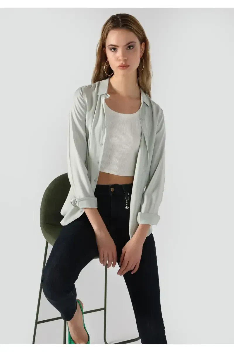 Добавьте изящества в свой повседневный стиль с помощью рубашки с длинным рукавом для женщин Regular Fit Cl1048443 зеленого цвета, которая сочетает в себе стиль и комфорт. Эта рубашка, которая обеспечивает комфорт в течение всего дня благодаря своей мягкой фактуре и дышащей ткани, имеет классический дизайн, который подходит для любого стиля. Зеленый цвет добавляет яркости вашему стилю, гарантируя, что вы будете выглядеть стильно в любой обстановке, от офиса до повседневной жизни.