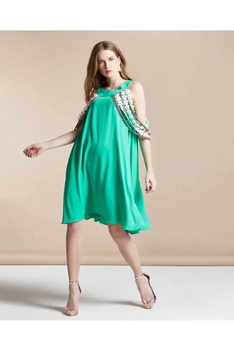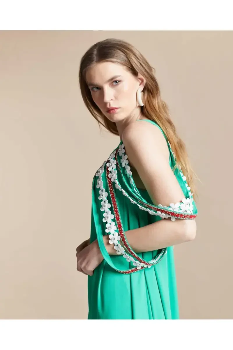 Зеленая туника с вышивкой и деталями на плечах | Стиль и комфорт