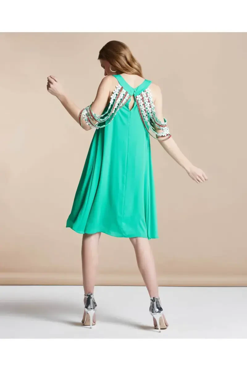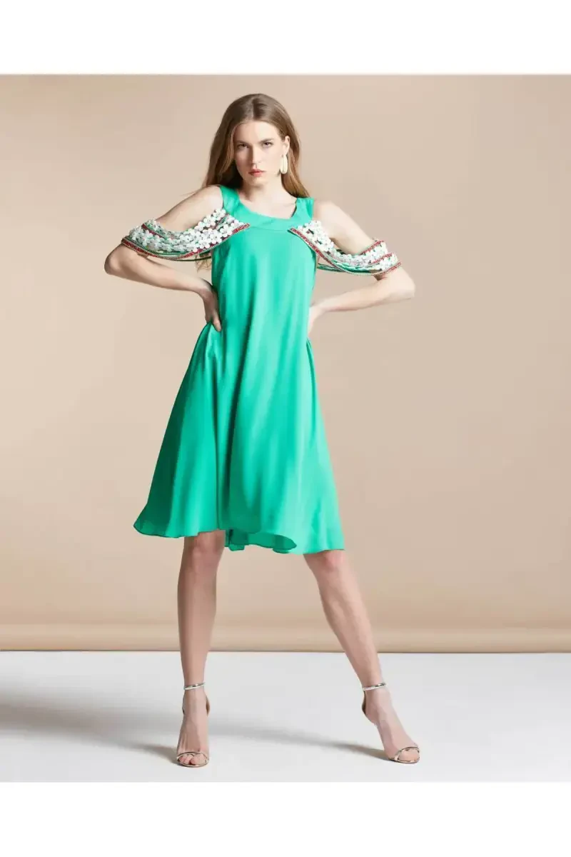 **Зеленая туника с вышивкой и деталями на плечах**Эта стильная и элегантная туника непременно привлечет к вам внимание своим уникальным дизайном. Изящная вышивка бисером на плечах добавит гламура, который выделит вас в любой обстановке. Мягкая и дышащая тканая ткань обеспечивает комфорт и легкость на весь день.**Характеристики:*** Ткань из переплетения нитей* Удобная и свободная посадка* Регулярный силуэт, который подчеркивает все типы телосложения* Универсальный дизайн, подходящий для всех возрастов* Стандартная длина, которая дополняет различные формы тела**Информация о товаре:*** Код товара: 28560* Продавец: Serpil Exclusive* Наличие на складе: Менее 5 штук* Ограничение заказа: 10 единиц (за исключением корпоративных заказов)* Срок возврата: 15 дней (бесплатно)Дополните свой стиль этой зеленой туникой с вышивкой и деталями на плечах и выделяйтесь, куда бы вы ни пошли.