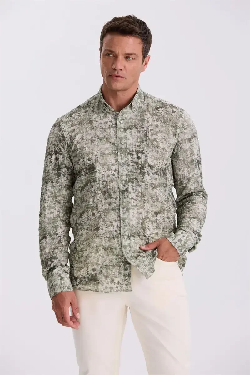 Зеленая узорчатая рубашка, рубашка с пуговицами на воротнике, рубашка Comfort Fit, мужская рубашка, стильная рубашка