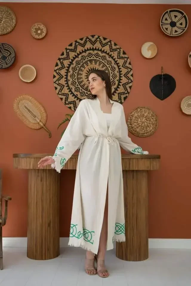 Зеленая льняная кофта с принтом станет незаменимой вещью в вашем гардеробе. Легкость и охлаждающие свойства натурального льна обеспечивают комфорт даже в жаркую погоду. Изысканные детали принта на кофте придают вашему образу неповторимый вид, а различные оттенки зеленого отражают свежесть природы. Независимо от того, создаете ли вы повседневный образ с джинсами или собираетесь на особое мероприятие в элегантном платье, эта кофта - универсальная вещь, которая подойдет для любого случая. Естественная помятость льна придает кофте непринужденный и расслабленный вид, а также естественную элегантность. Открытый фасон кофты позволяет создавать различные стильные образы. Вы можете подчеркнуть талию ремнем или оставить ее открытой для более расслабленного вида. Длинные рукава согреют вас в прохладную погоду и защитят от вредного воздействия солнца. Эта кофта не только обеспечивает стильный внешний вид, но и является экологически чистым вариантом. Лен - это экологически чистый материал, который сохраняет природные ресурсы и является биоразлагаемым. Таким образом, вы делаете экологичный выбор, не жертвуя своим стилем. Если вам нужна стильная и удобная вещь в вашем гардеробе, то зеленая льняная кофта с принтом - именно то, что вам нужно. Эта кофта, которая позволит вам отразить свой стиль в любой обстановке, от повседневных образов до особых мероприятий, станет вещью, которую вы будете любить носить долгие годы.