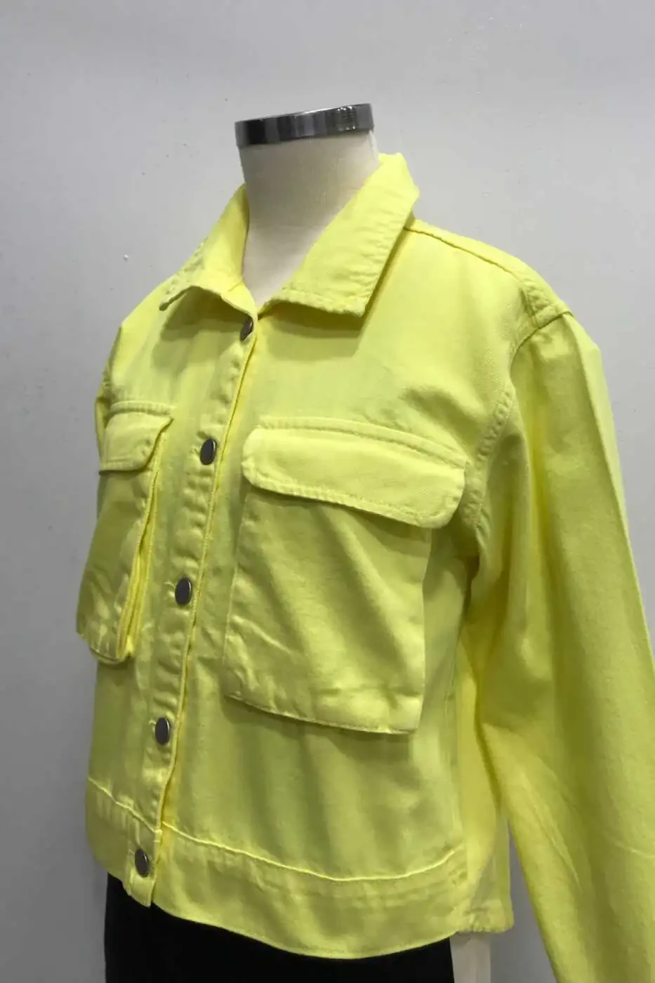 Детская желтая джинсовая куртка - с накладными карманами, стильная и комфортная