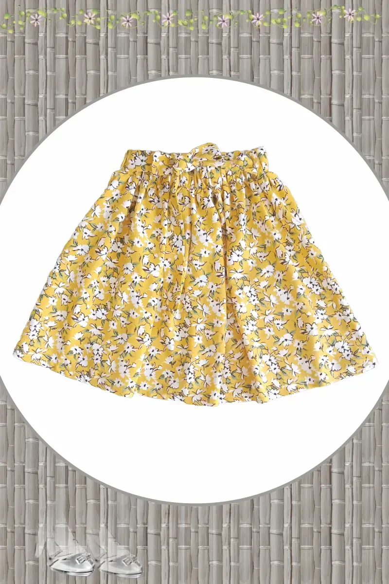 Желтая Юбка для Девочек из Хлопка и Вискозы с Желтыми Цветами