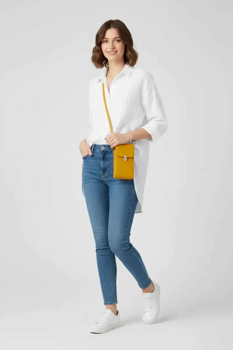 Сочетая стиль и функциональность, эта желтая кожаная сумка-кроссбоди для телефона поможет вам создать неповторимый стиль в повседневной жизни.